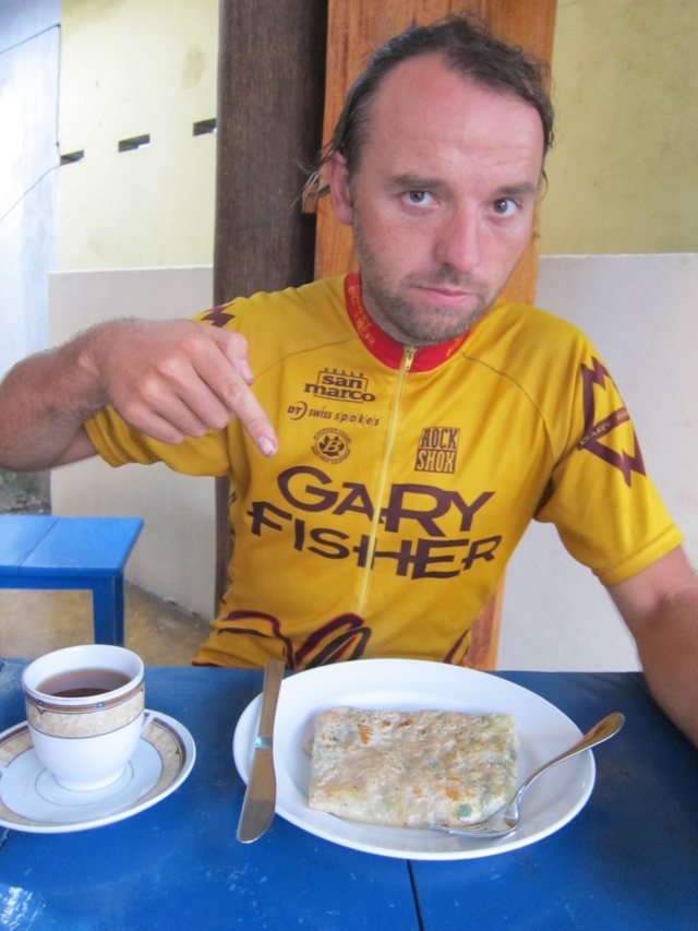 Und nach langem suchen finden wir auch heraus was ein Rotti auf Sri-Lanka bedeutet. Es ist sozusagen ein zusammen geklappter Pfannkuchen (für unserer österreichischen Leser ein Palatschinken) mit unterschiedlichsten Füllungen, welche zumeist klein gehackt werden.